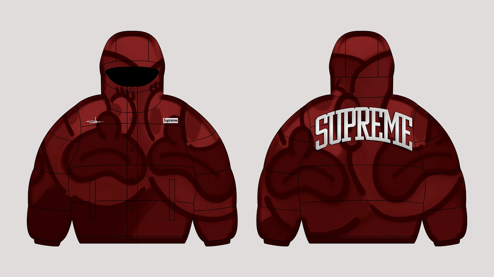 This concept collaboration between Supreme and Slawn combines Slawn’s graffiti-style artwork with Supreme's streetwear feel. The capsule includes 4 T-shirts, 3 jackets, 3 skateboard decks, and 3 art notebooks, an advertising poster and a reimagined box logo inpsired by Slawn’s art system.
